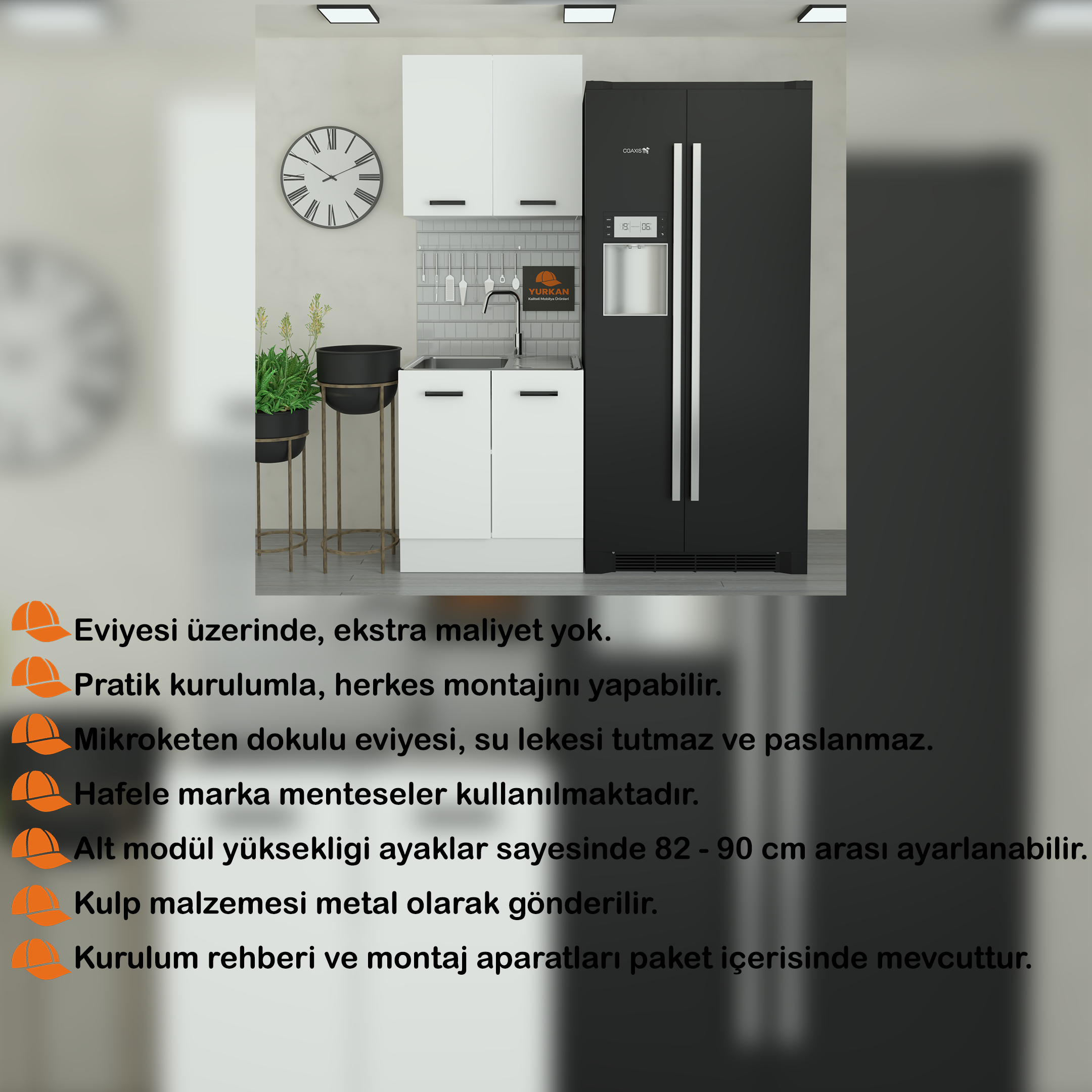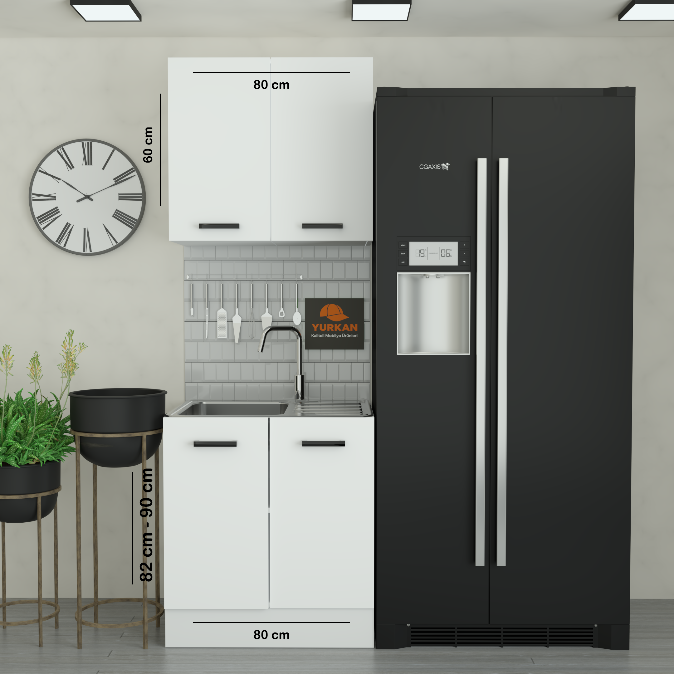 Yurkan 80 cm Eviyeli mutfak dolabı Alucra modelidir. Keten dokulu eviyesi, mutfak dolabı, montaj aparatları ve kurulum rehberi ile beraber gelmektedir.